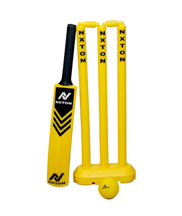 Nxton Plastic Cricket Set is a complete lightweight kit designed for kids and beginners. It includes a durable plastic bat, stumps, and ball—perfect for casual play, training, and outdoor fun with easy handling.