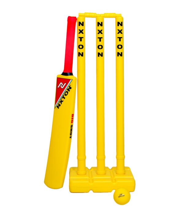 Nxton Plastic Cricket Set is a complete lightweight kit designed for kids and beginners. It includes a durable plastic bat, stumps, and ball—perfect for casual play, training, and outdoor fun with easy handling.