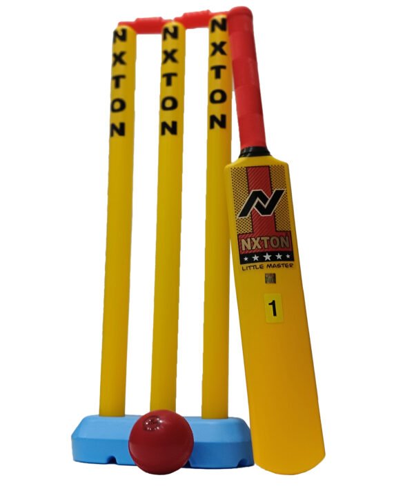 Nxton Plastic Cricket Set is a complete lightweight kit designed for kids and beginners. It includes a durable plastic bat, stumps, and ball—perfect for casual play, training, and outdoor fun with easy handling.